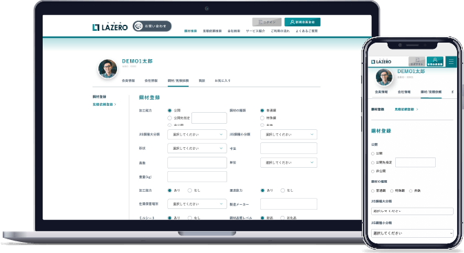 ラセロは金属材料や加工技術の取引に特化したポータルサービスです。
